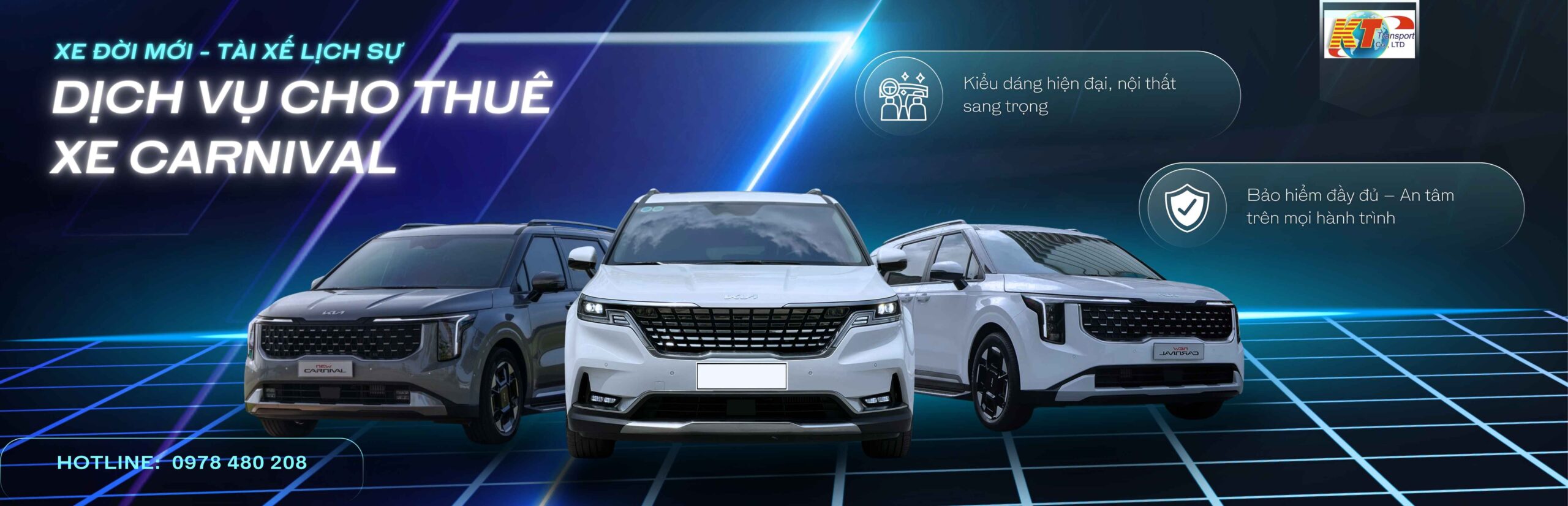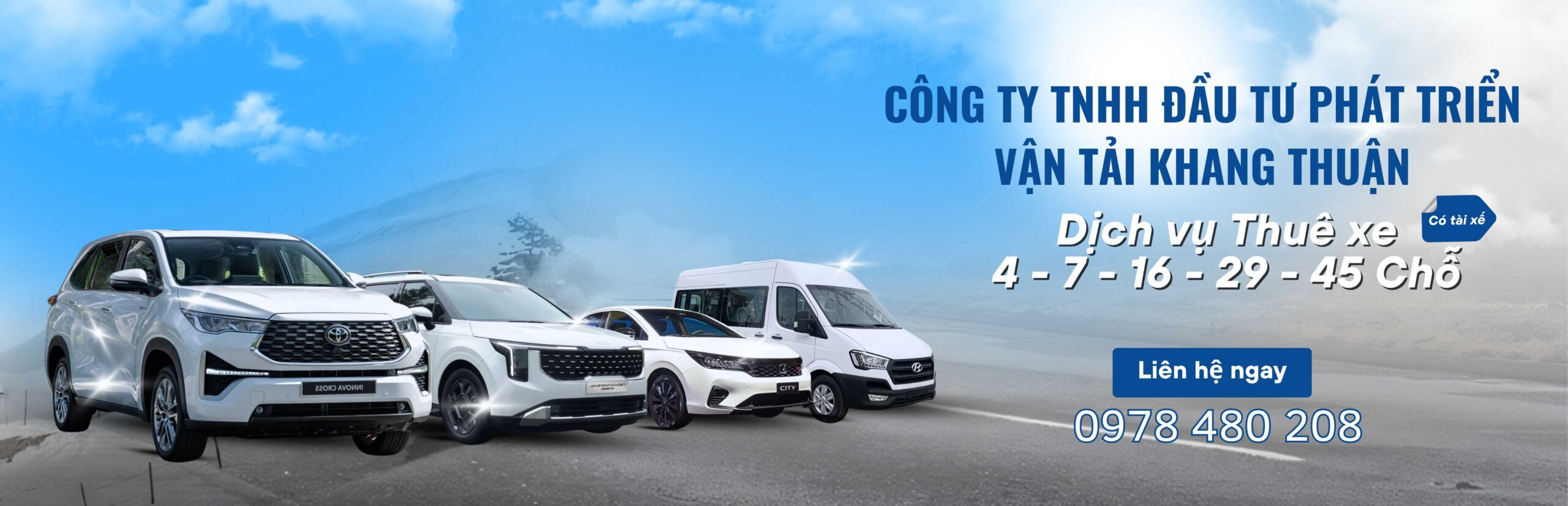 Cùng với sự phát triển ngày càng lớn mạnh của các Doanh nghiệp, nhu cầu sử dụng phương tiện đi lại, làm việc, công tác, du lịch,…ngày càng tăng. Thấu hiểu điều đó CÔNG TY TNHH ĐẦU TƯ PHÁT TRIỂN VẬN TẢI KHANG THUẬN, với các phương tiện hiện đại, phong phú và đa dạng về chủng loại sẵn sàng đáp ứng mọi nhu cầu của Quý khách.