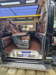 Xe Limousine được thiết kế như khoang hạng thương gia trên máy bay – giúp khách hàng thoải mái nghỉ ngơi, làm việc, hoặc thư giãn trong suốt hành trình.